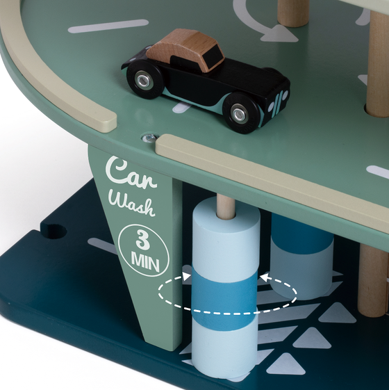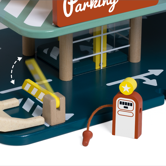 See 50ndatest inspireeritud garaaž meenutab autode kuldaega! Teel parklasse on autopesula ja tankla. Lift teenindab kõiki kolme tasandit ja ehituse tipus on platvorm helikopteriga.