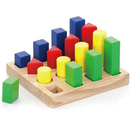 Varajase loogika ja motoorika harjutamiseks: – paksud, värvilised puidust klotsid, mis avavad kujundite maailma.